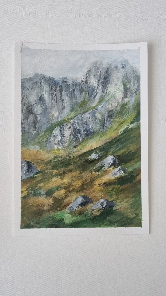 I enjoy spending time outdoors - hiking through the valleys, climbing mountains, hill walking, and especially chasing those sunrises and sunsets when the landscape lights up in the most magical way! I love to pack my sketch book with me and take every chance to capture the moment and feeling of serenity.